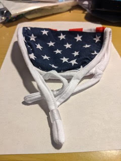 The American mask looks like a flag with mostly white and blue with white stars and white with big red stripes.