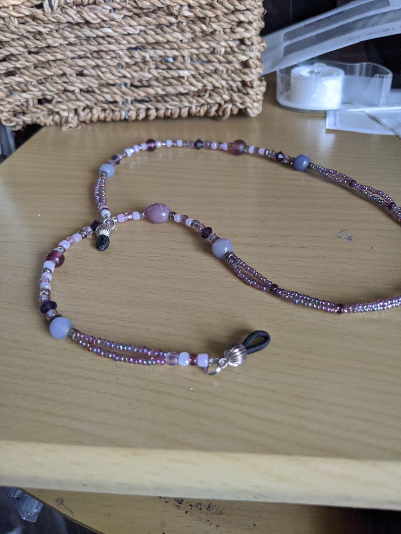 Here is handcrafted item, for all the purple beads are strung together.