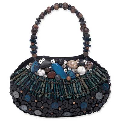 The handbag also has lot beaded buttons all over the bag, plus a lot of blue driftwood, and colorful shells all over the front of the bag as pictured.