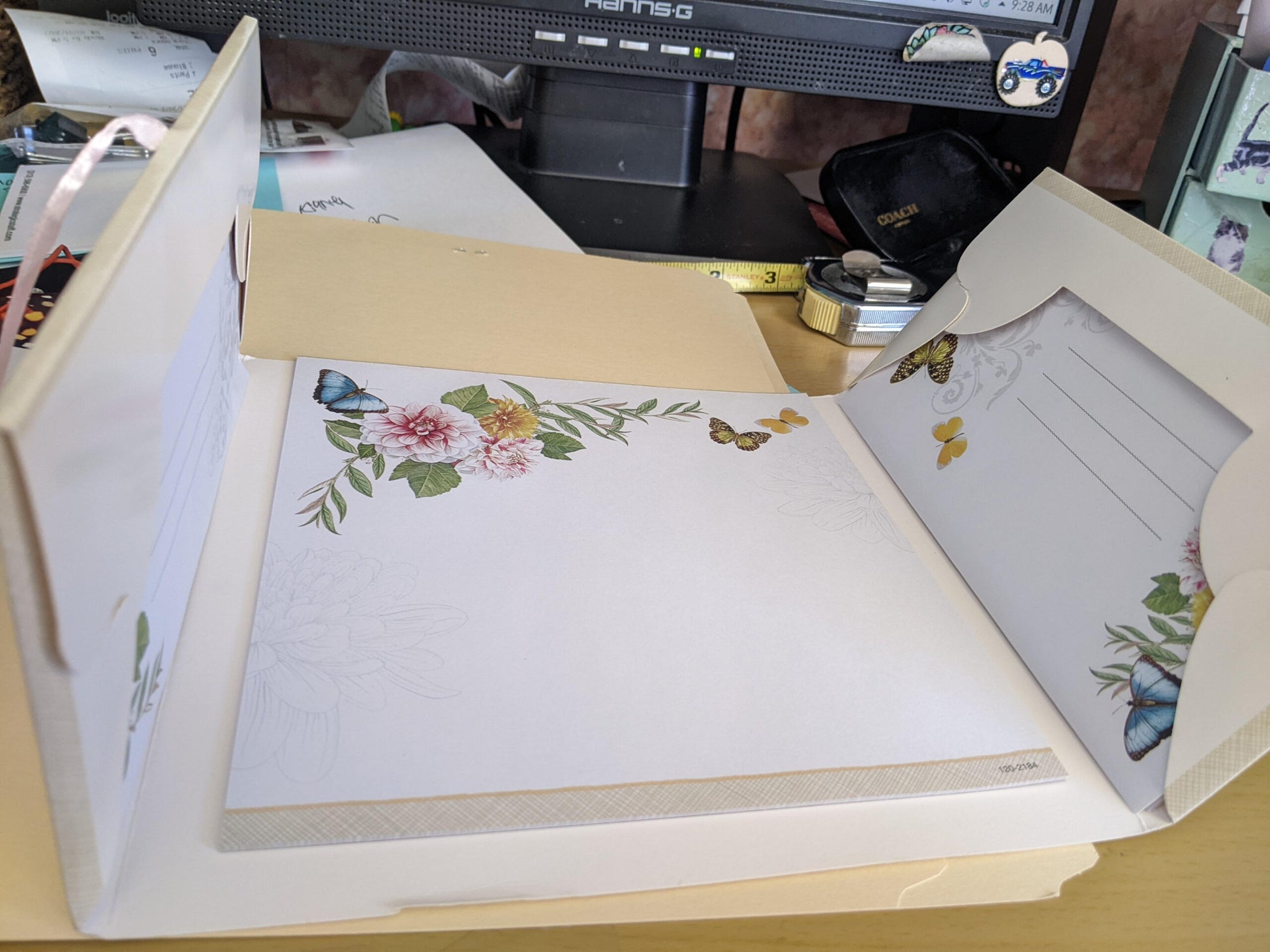Beautiful stationary set with flowers and butterflies that ties with a pink ribbon