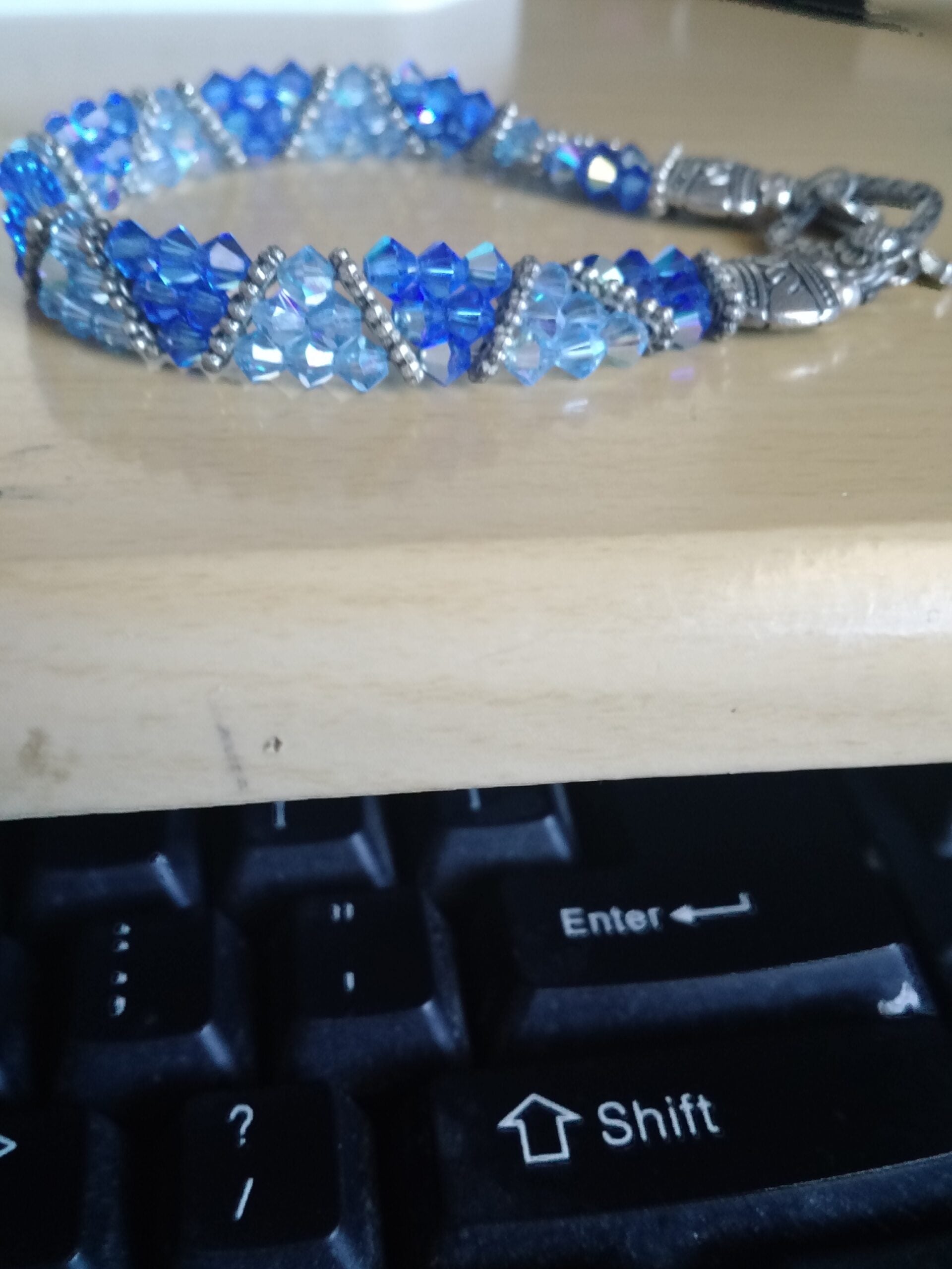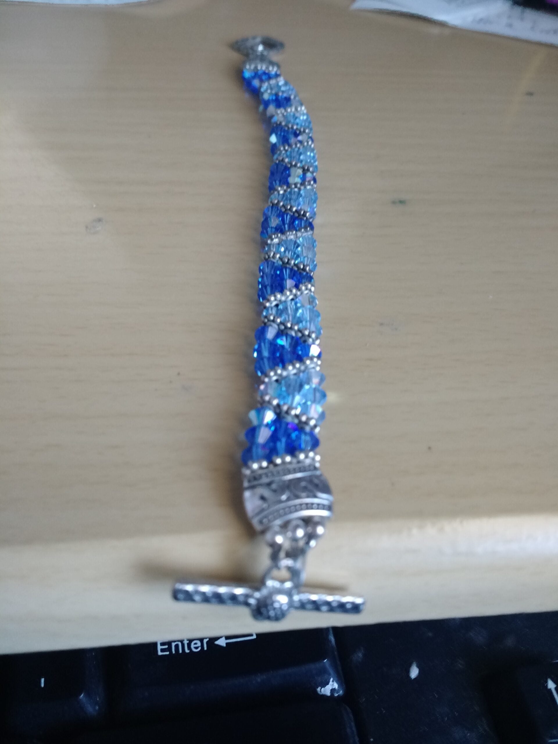 It features silver toggle hook and silver with fake Austrian Crystal beads all over the bracelet.