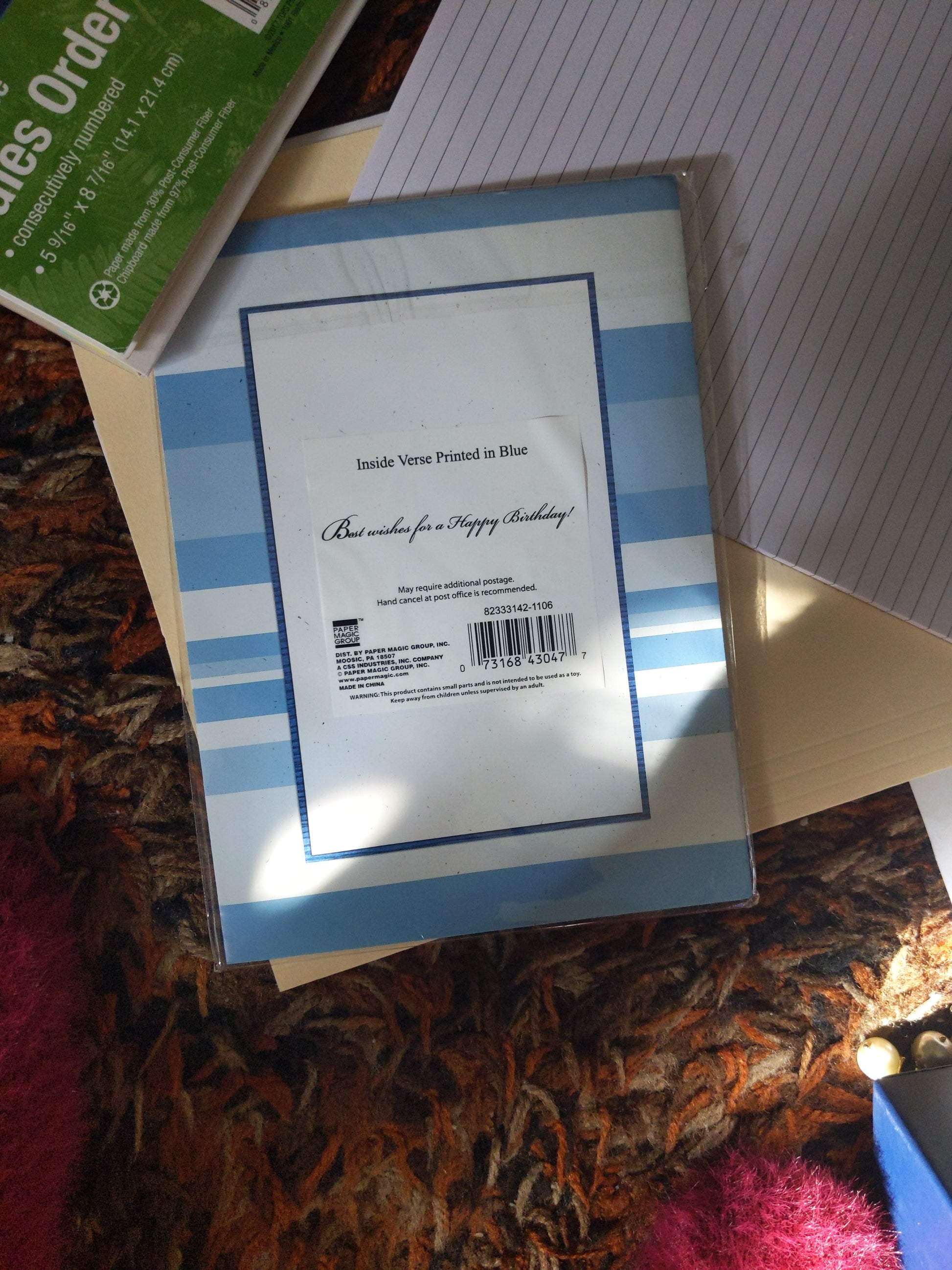 Blank Happy Birthday card in blue color and measures 5 x 8.