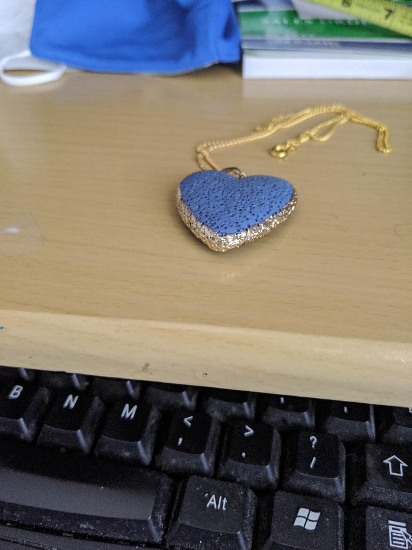 Blue heart necklace with fake gold chain.