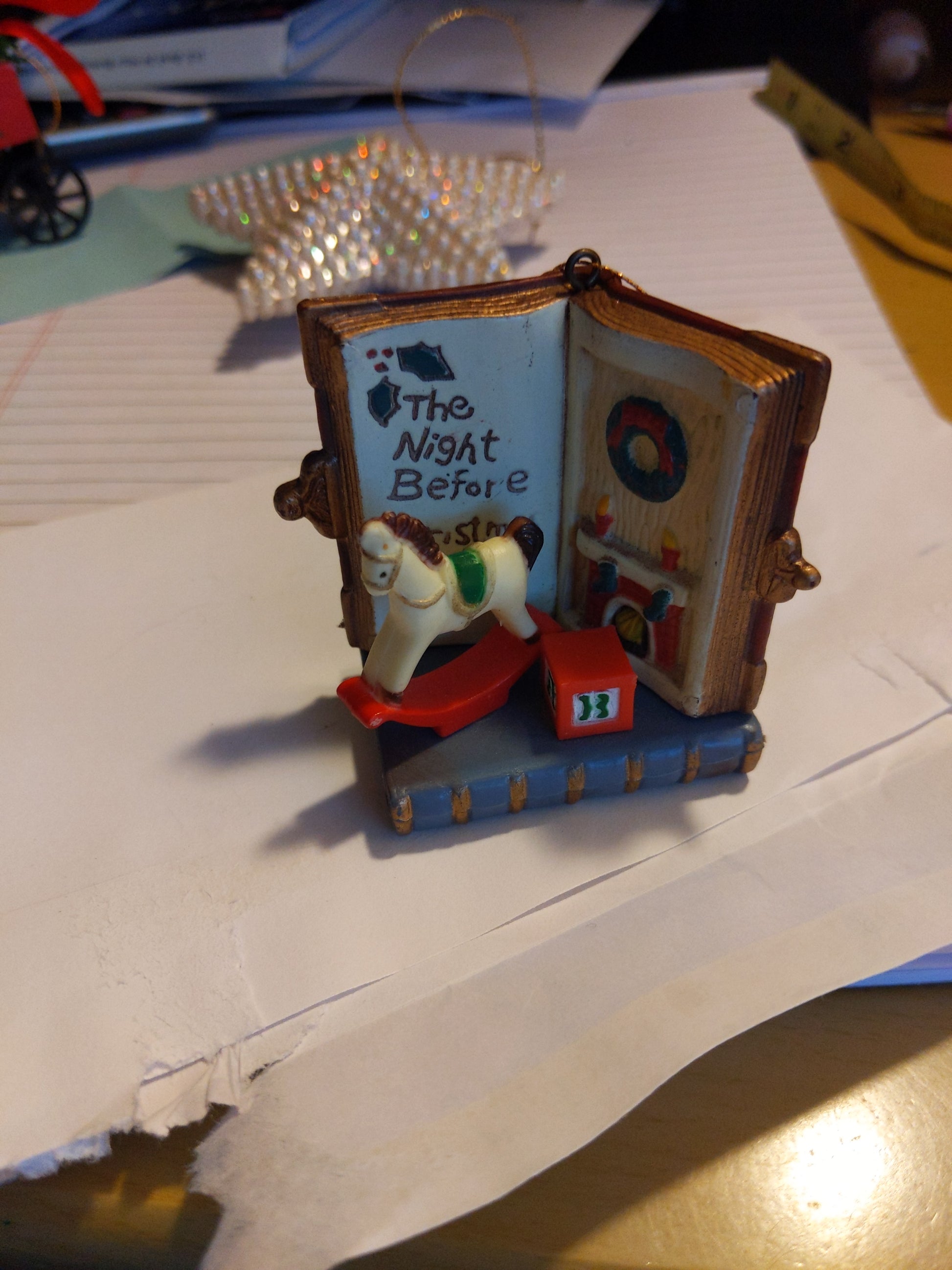 And rocking horse and red block and fireplace and wreath and measures only 2" across.