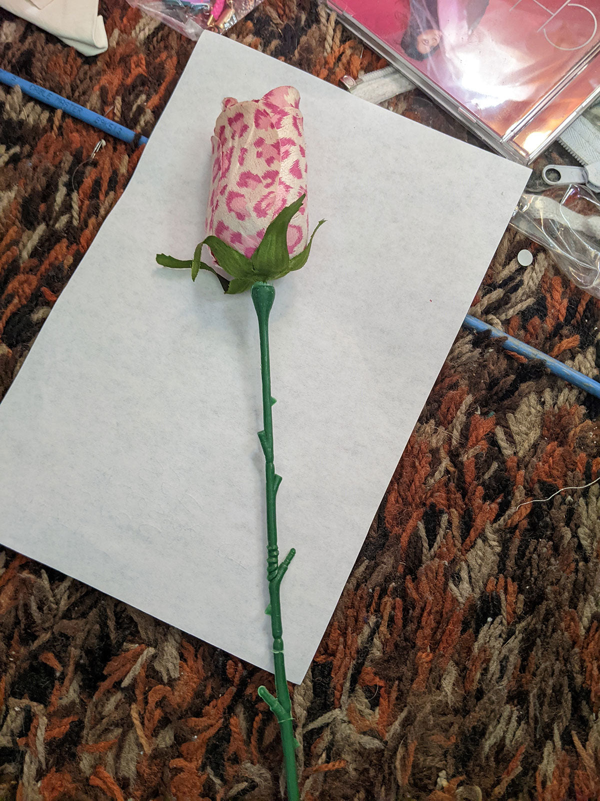 Beautiful long stem silk rose with spotted dark pink and light pink colors