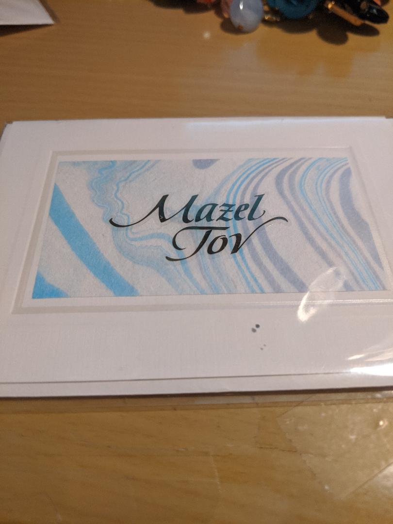 Mazel Tov Blue & Gray Card with Matching White Envelope-NEW