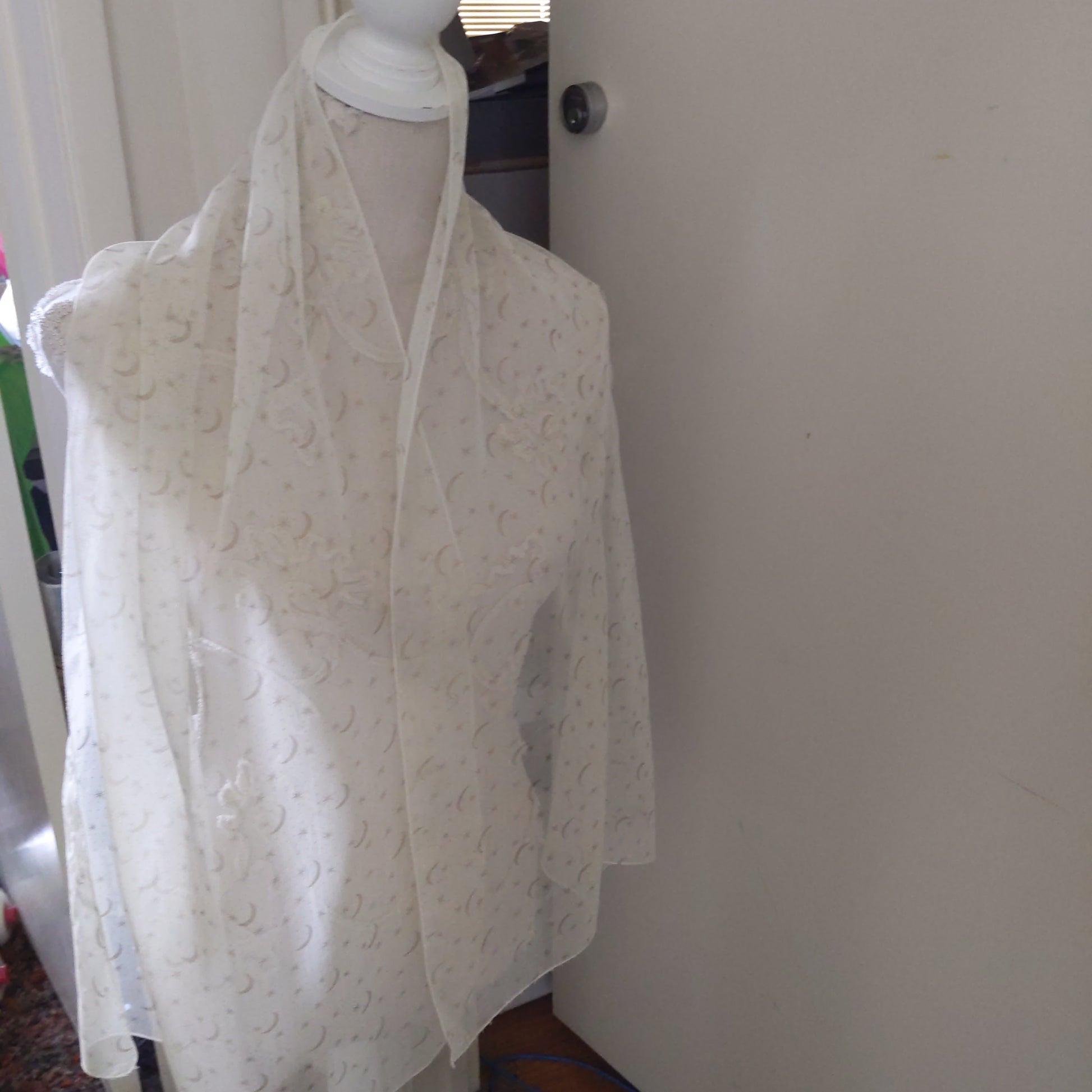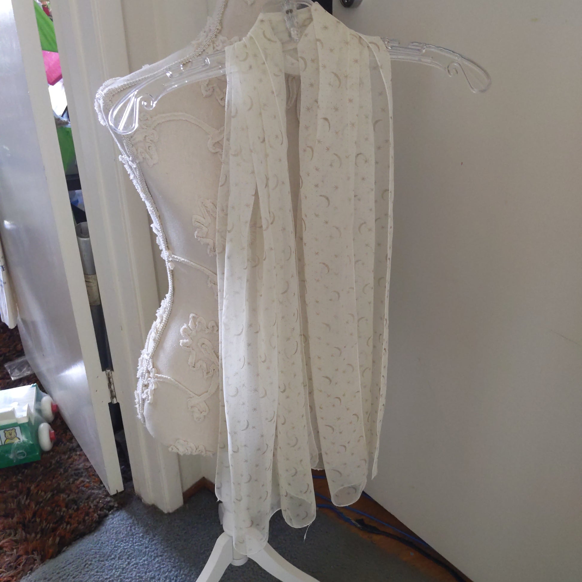 With Gold Moons and Gold star patterns all over the scarf in pale yellow color.