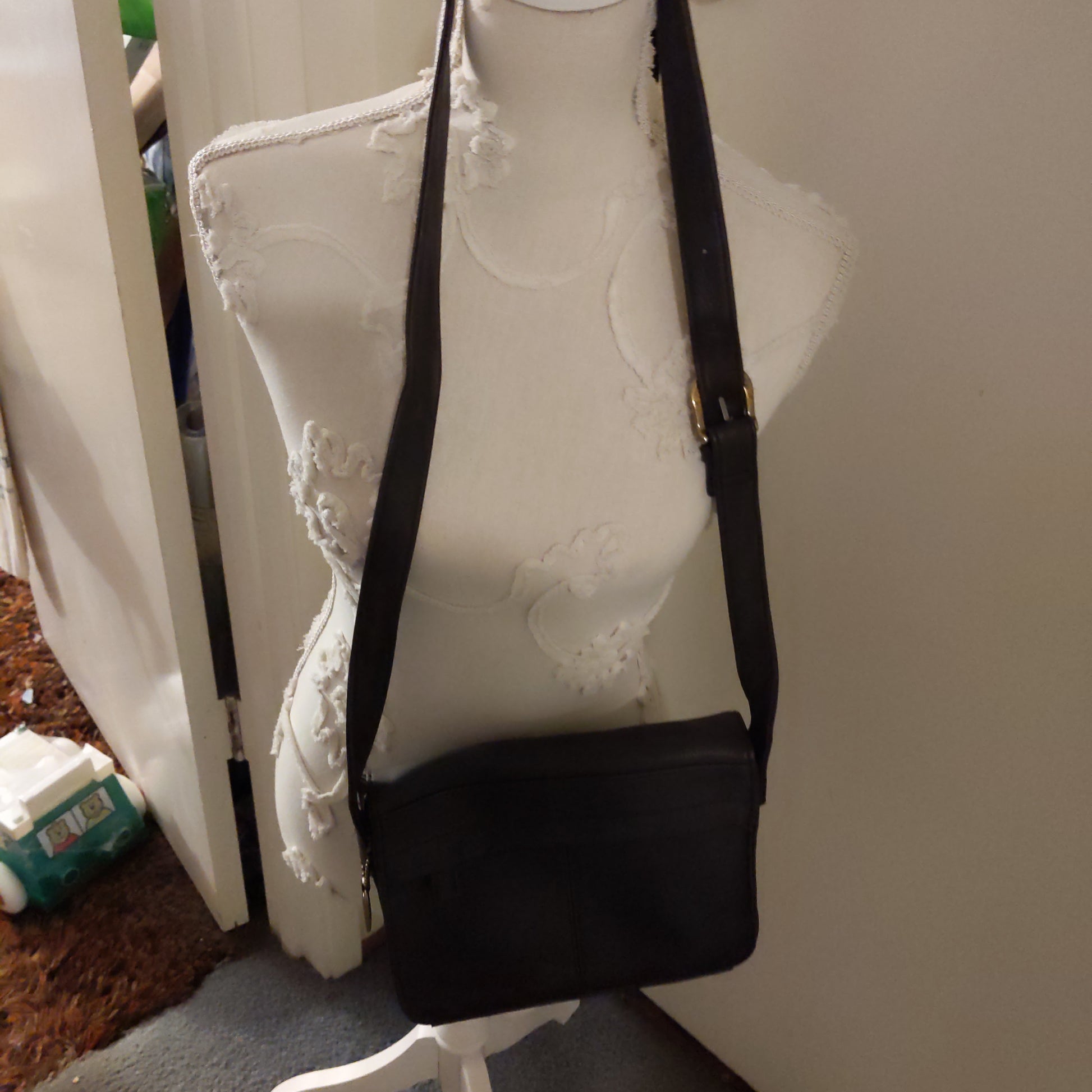 Dark Brown Designer Handbag with shoulder strap.