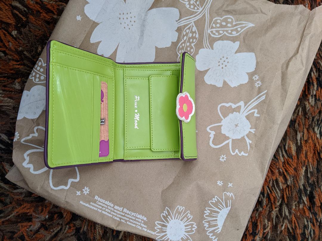 Inside the wallet , there are spaces for dollar bills, and credit cards and coins, and space for your ID, too.