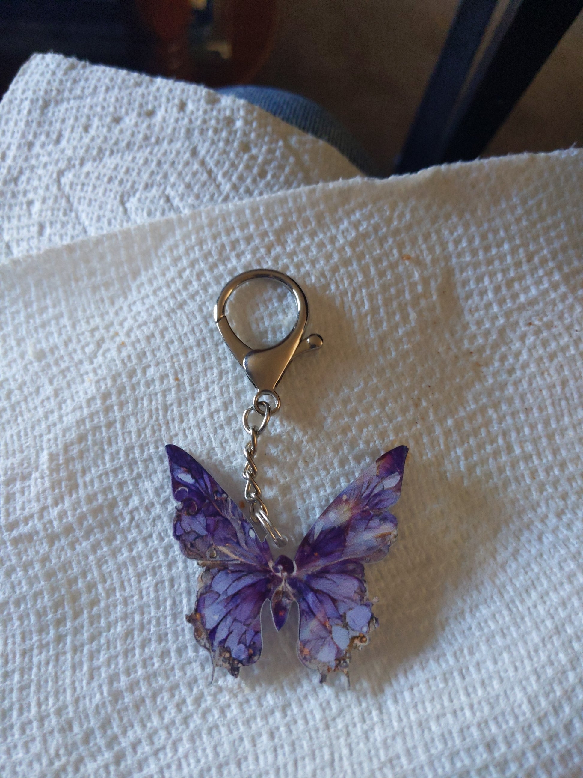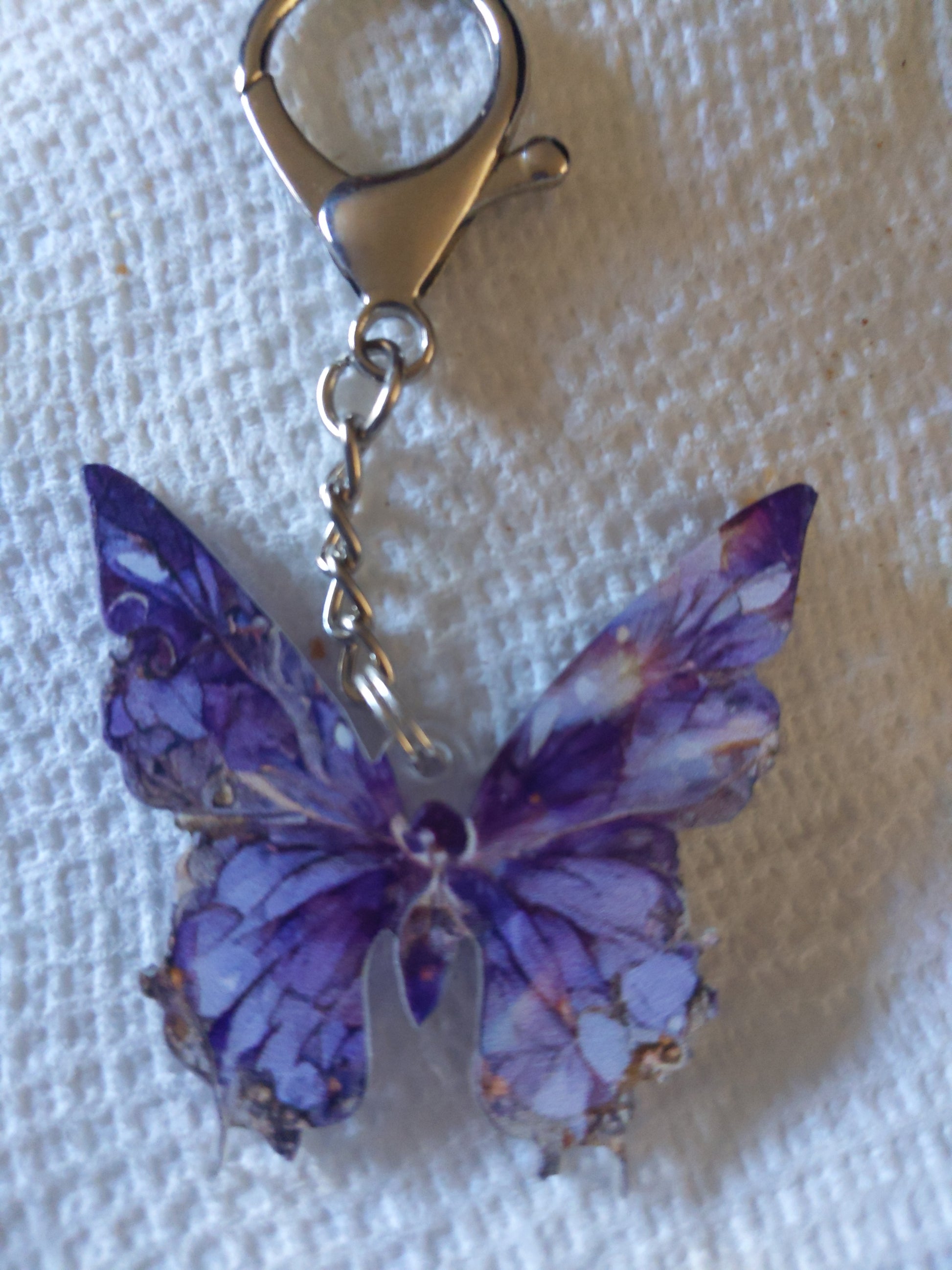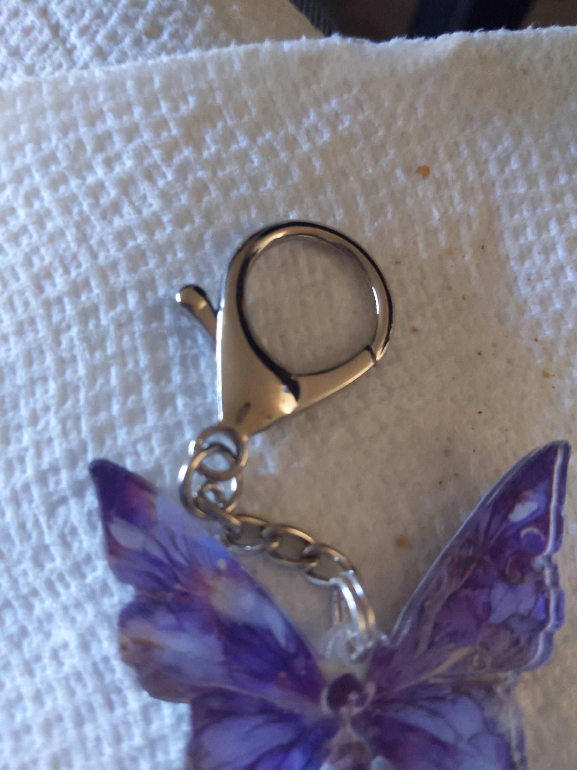 In a beautiful purple color with a secured silver chain to hang on your favorite keys or handbag.