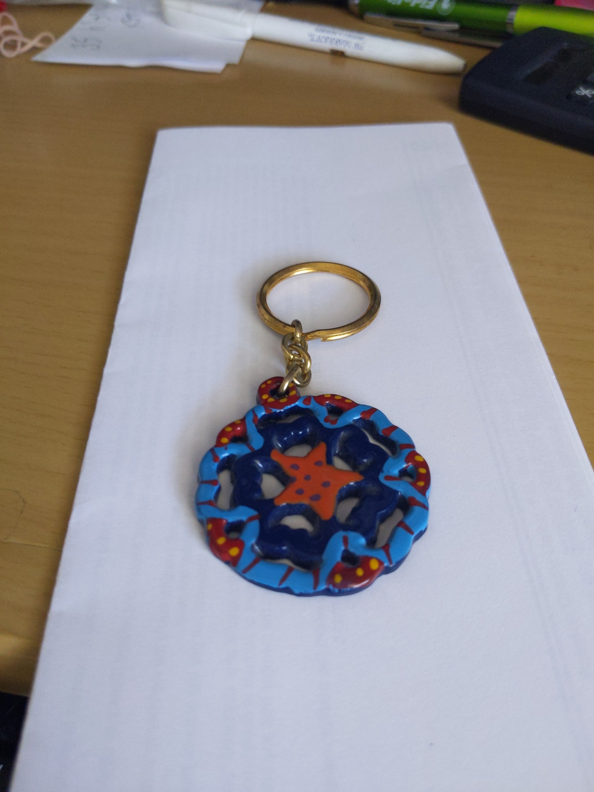 Cute starfish key chain blue and red colors.