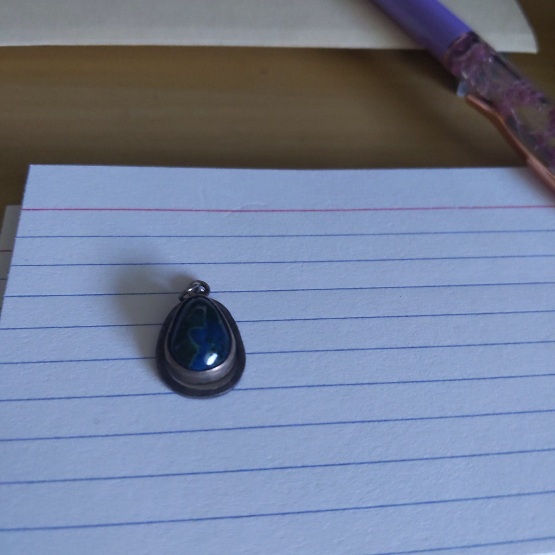 Measures 1" and has green Israel stone set inside.