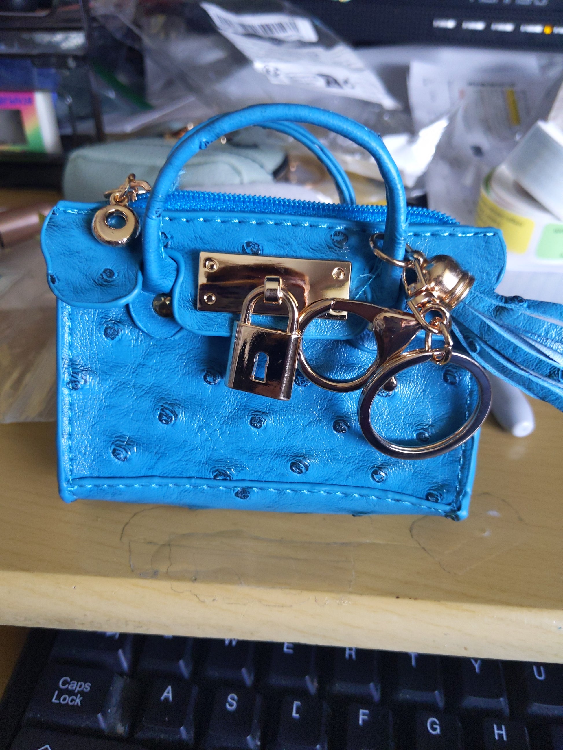 Measures about 3 x 4 and can store inside tiny lipstick, keys, mirror and small eyeshadow.