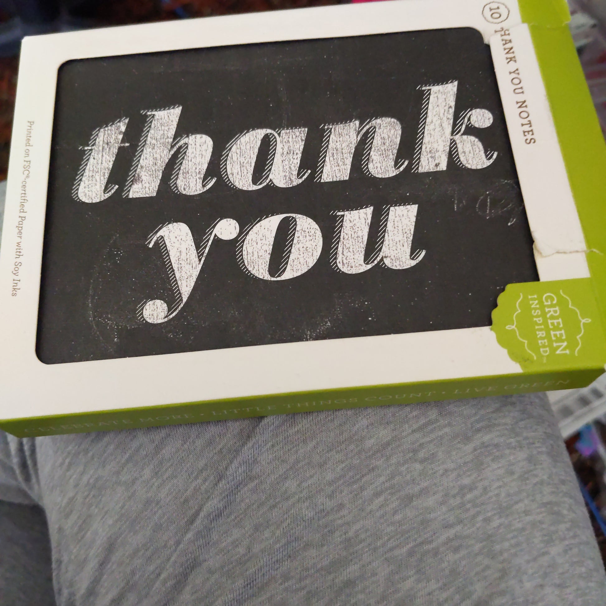 Ten blank cards inside with matching green envelopes.