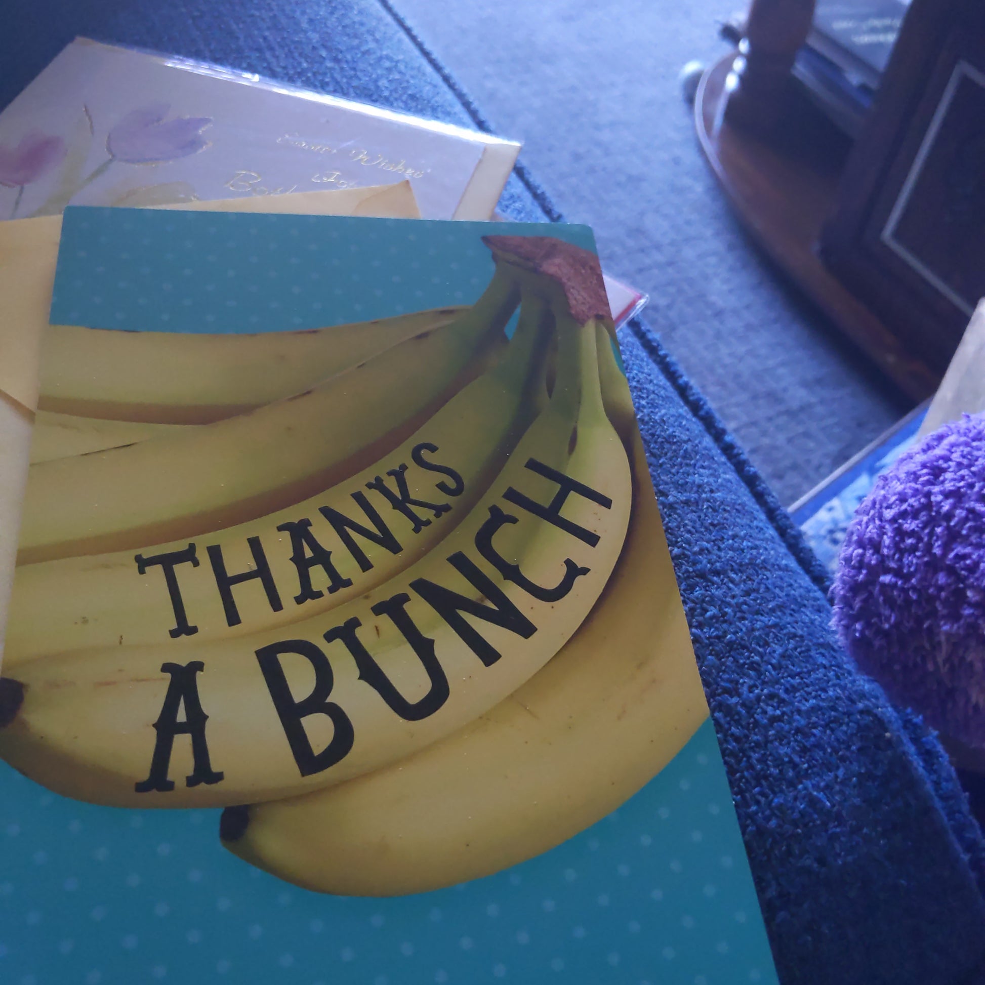 Saids Thanks a bunch on the front of the card and blank yellow inside and matching yellow envelope.