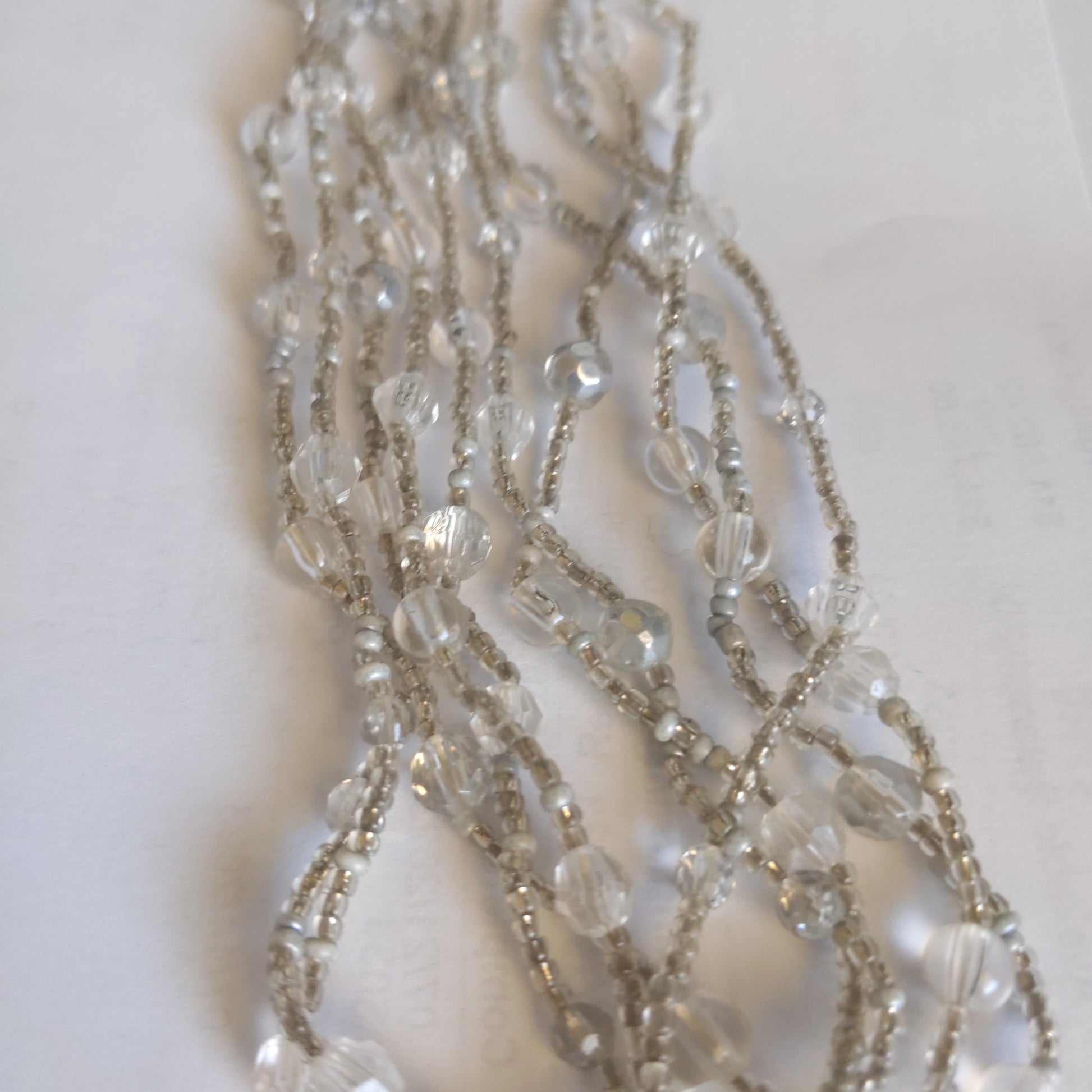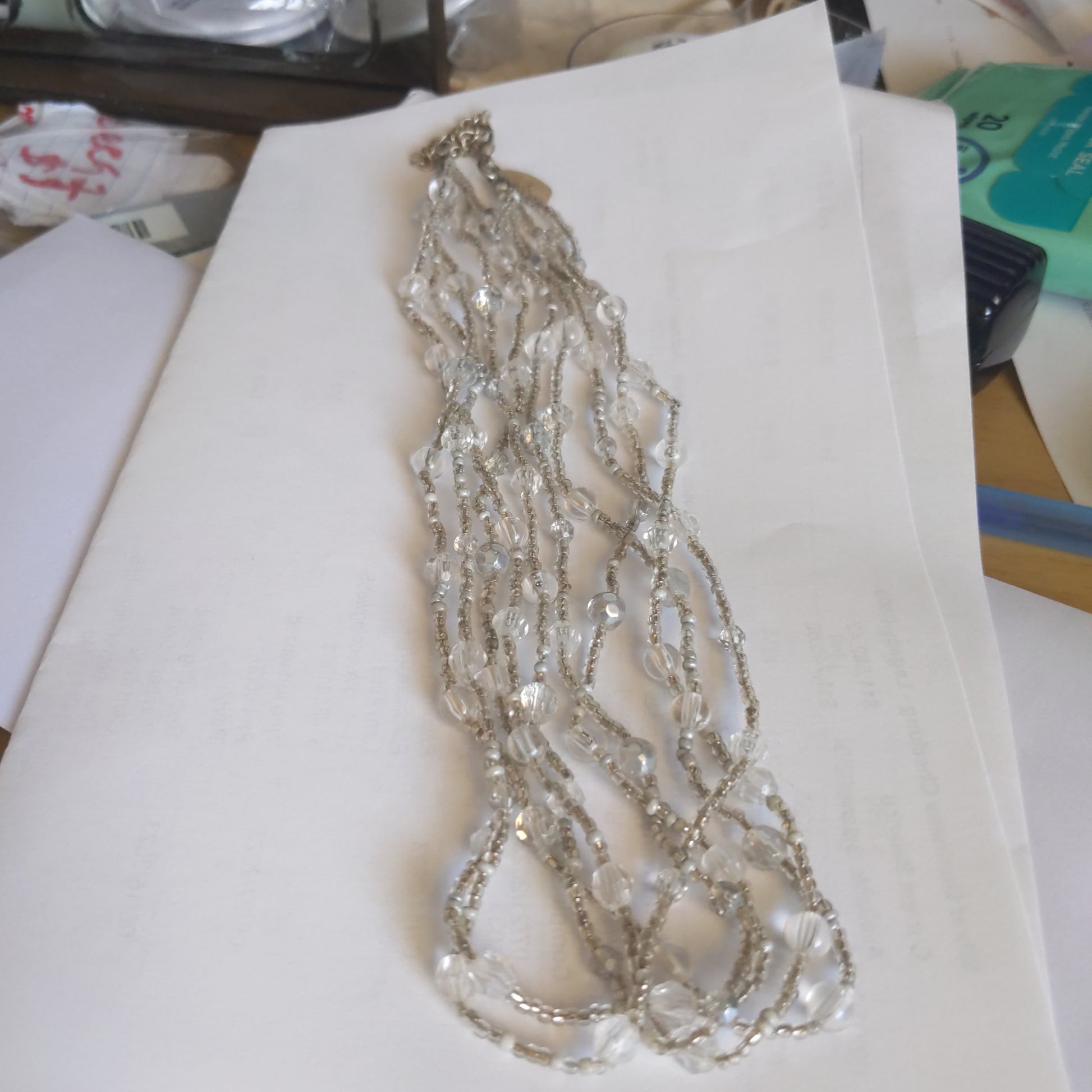 Pretty white clear beaded shorter necklace because of the length.