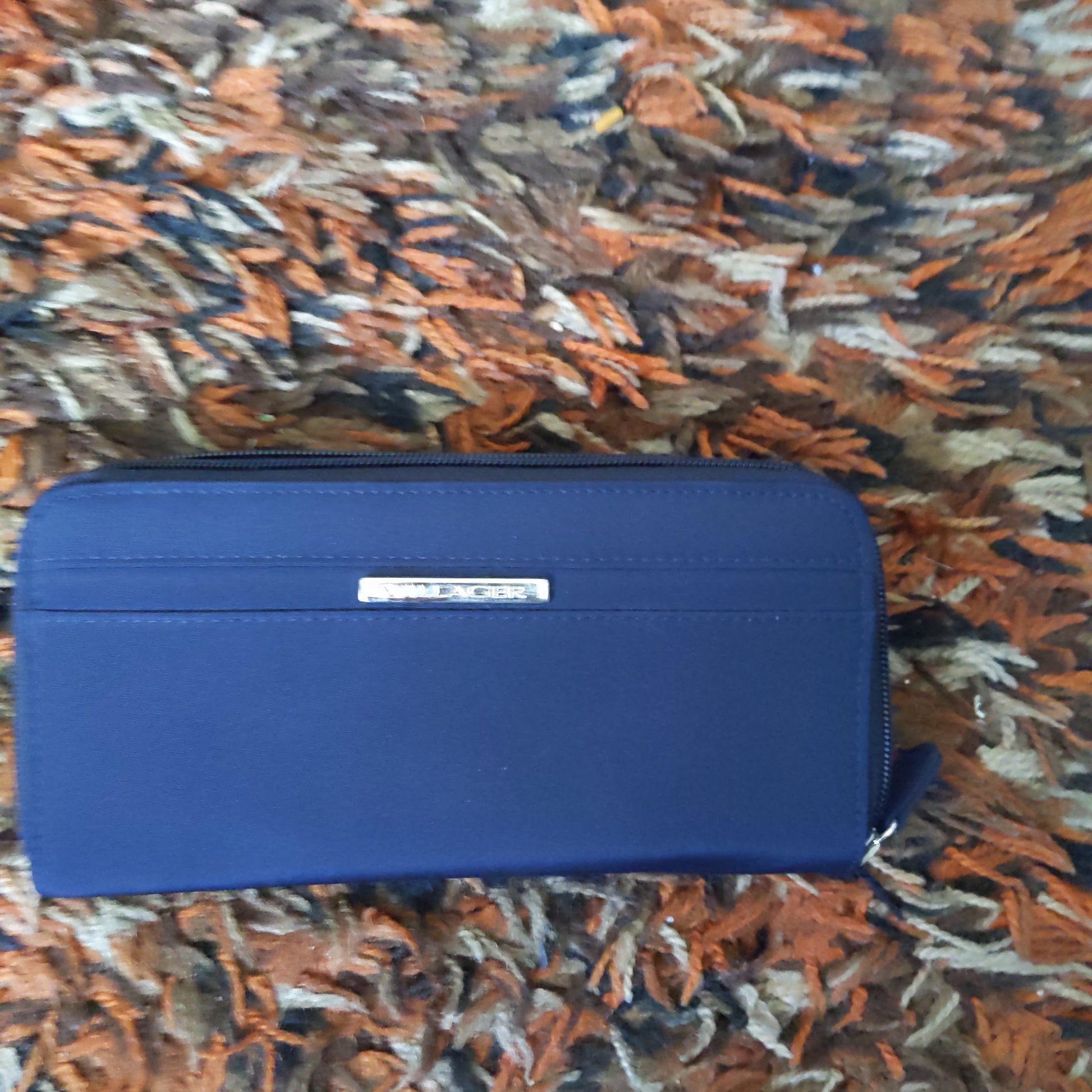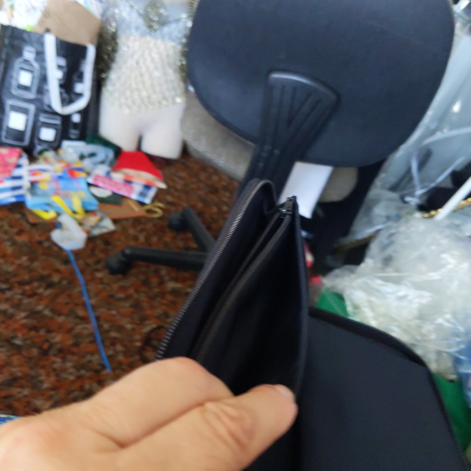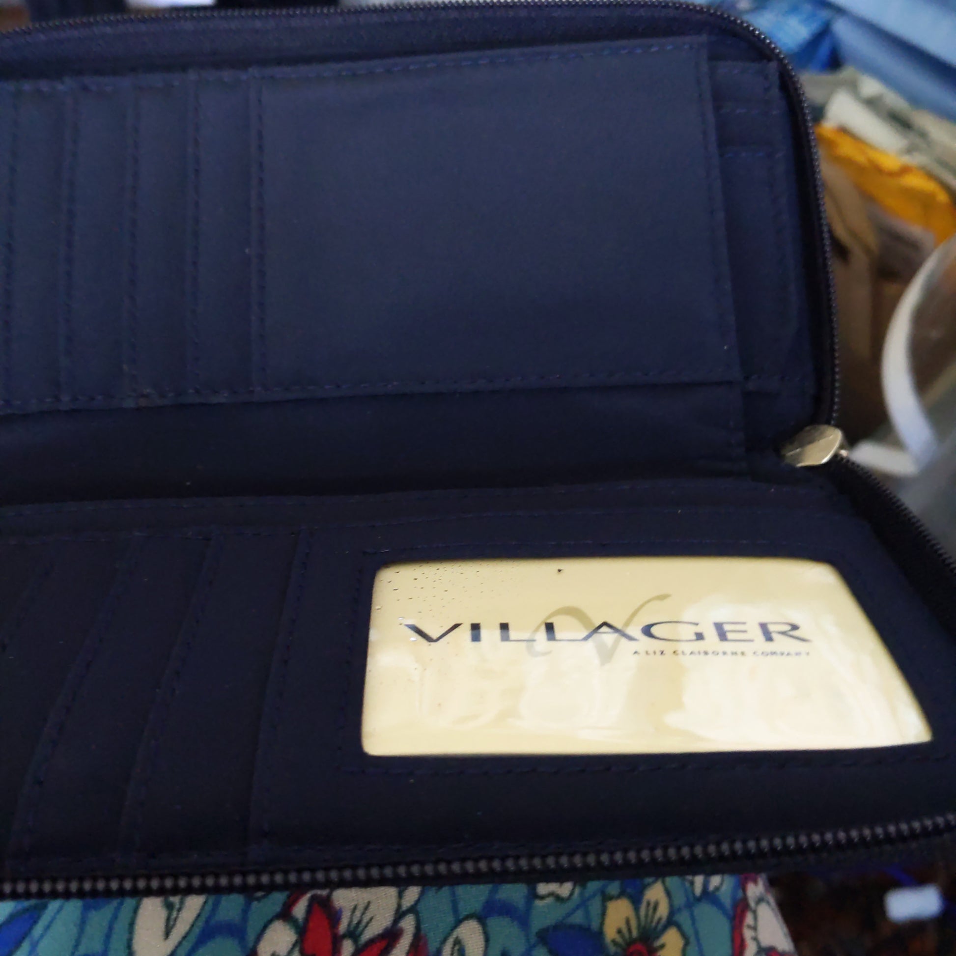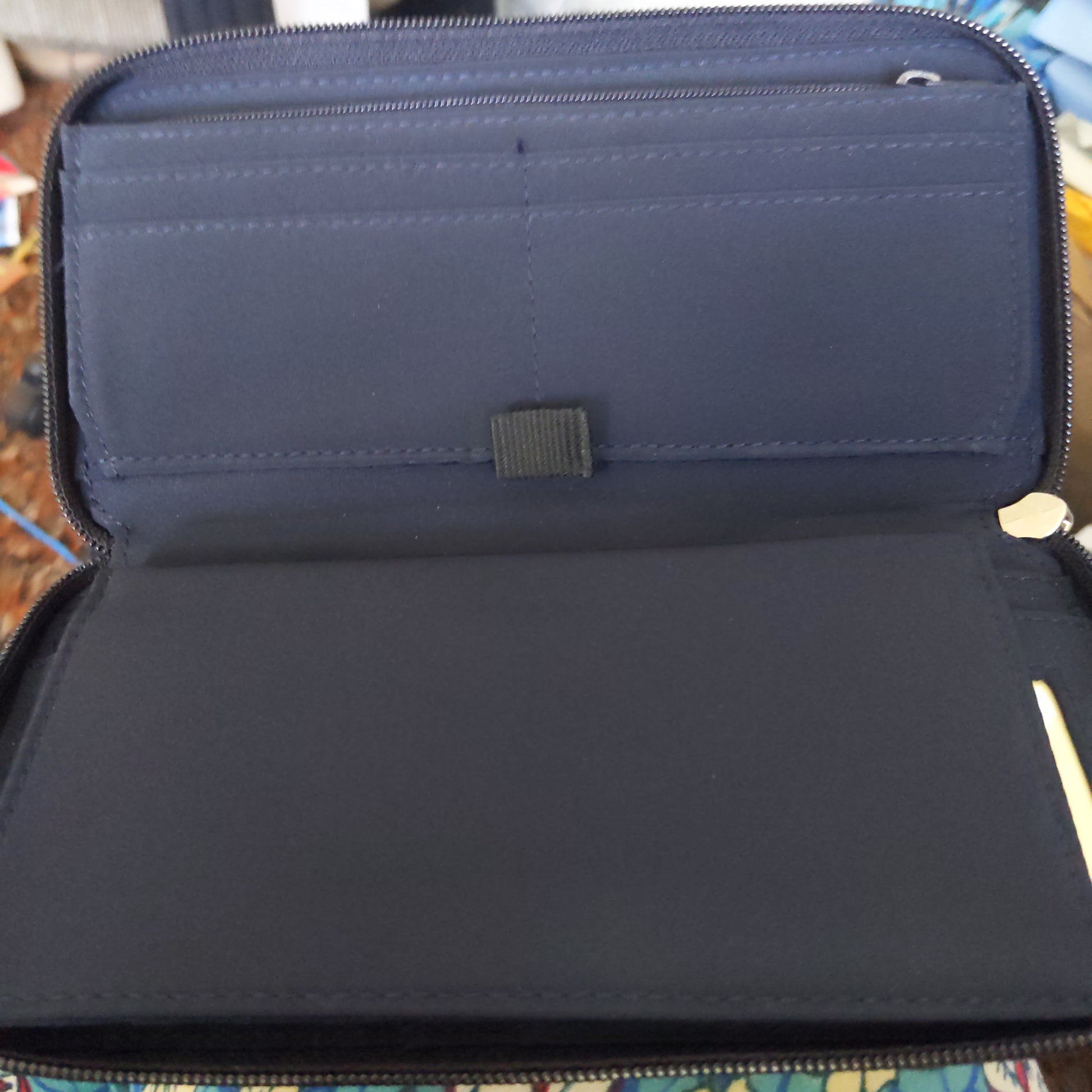 Measures 5 x 9 and has lot of compartments for checkbook, credit card, pics, ID, coins and dollar bills.