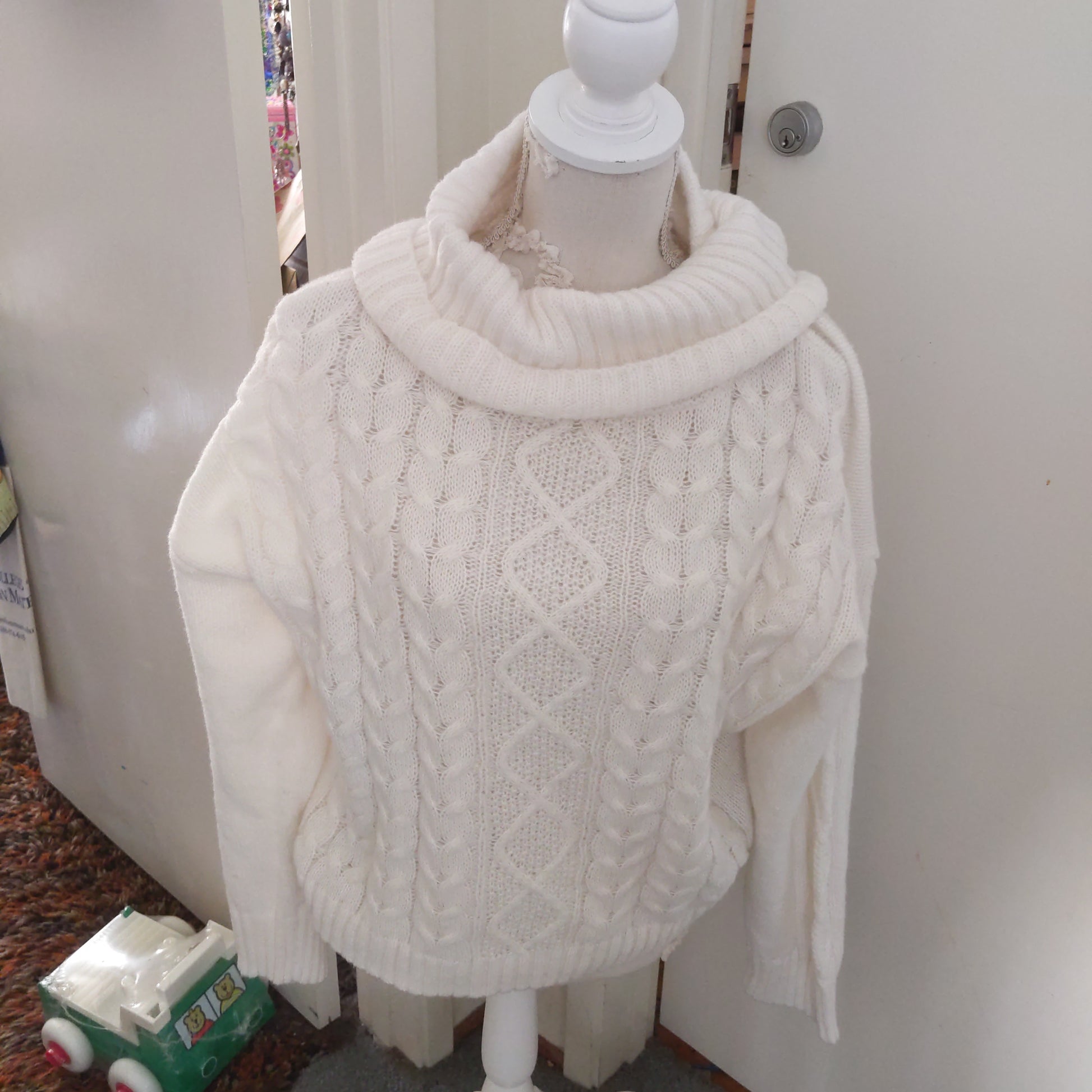 Beautiful long sleeve turtleneck white sweater with texture designs all over the sweater.